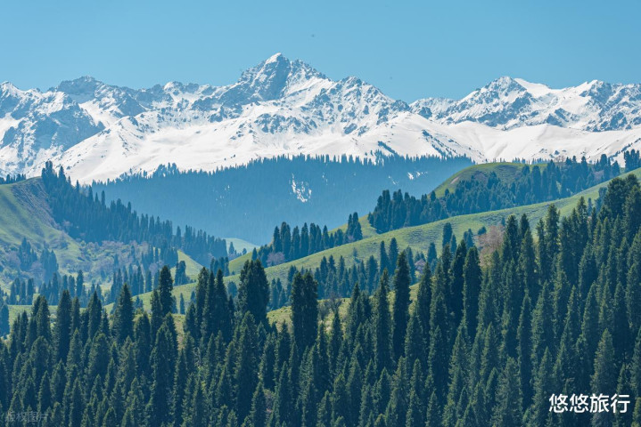 库尔德宁和恰西的草原4月中旬运行返青,此时东说念主少,可自驾参加景区。草原、顶冰花、云杉林和雪山,当然景不雅组合得恰到自制。