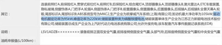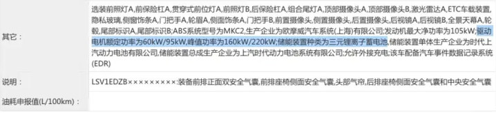 配备65.2kWh三元锂电板组+最大功率为220千瓦的单电机后驱,工信部报告WLTC续航里程340公里;