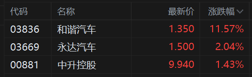 和洽汽车无间大涨超11%,5日连涨超32%引颈近期汽车经销商股高潮,永达汽车、中升控股均有涨幅。