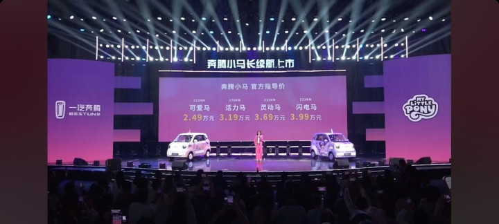 10月28日,奔腾小马长续航版官宣上市,222公里续航的灵动马官方开发价3.69万元,确立更高的闪电马官方开发价3.99万元,还有小马宝莉联名礼等。小马萌友田径仙女吴艳妮,为宇宙首批车主现场交车。
