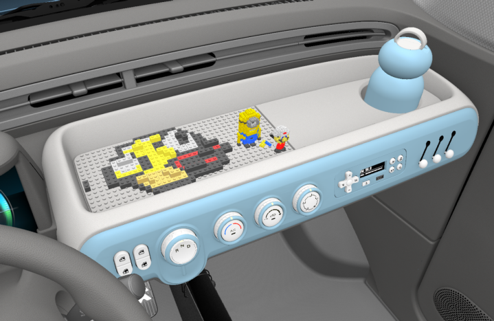个东说念主最可爱的是姿色板上的拼插积木台,可DIY个性空间,手机支架、节日氛围、请安语等轻视搭建。副驾前列的游戏手柄按键,亦然童趣饱和,3个可儿挂钩生动多变,着实作念到了小空间大魔法。