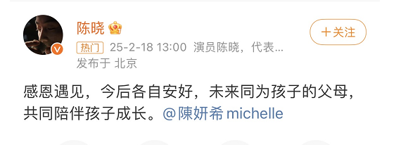 2月18日开yun体育网,陈晓和陈妍希告示仳离:感德碰见,今后各自安好,将来同为孩子的父母,共同奉陪孩子成长。