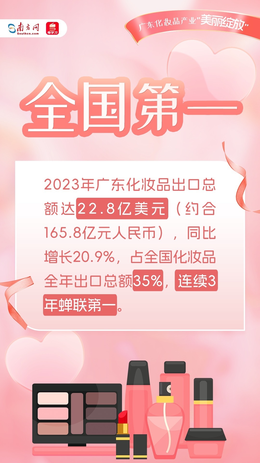 “世界好意思妆看中国,中国好意思妆看广东”。广东是化妆品产业大省,变成了集上游的原料、包材,中游的研发、制造,下流的品牌、营销于一体的好意思满产业链,并加快向“高质料”转型,汇注力、竞争力、外洋影响力有增无已,创下多个“第一”。