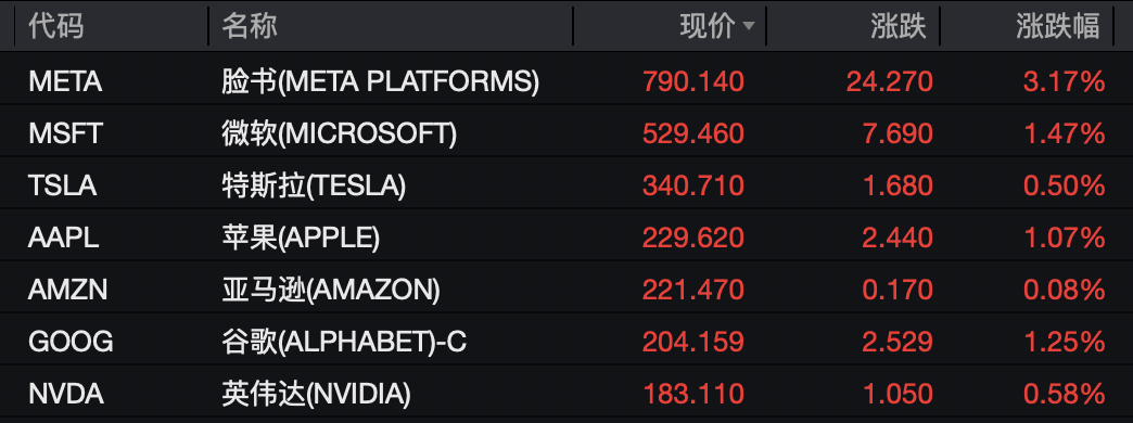 大型科技股再度飞腾,脸书飞腾超3%,微软、谷歌和苹果均涨超1%。英伟达、Meta股价创下历史新高。