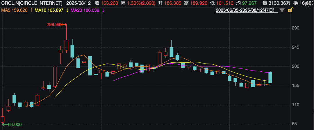 放置8月12日收盘,Circle当日飞腾1.30%。自6月5日上市以来,Circle股价自83.23好意思元/股飞腾至163.26好意思元/股。