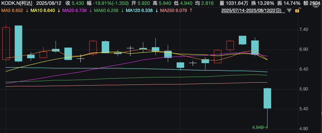 领有超百年历史的胶片巨头伊士曼柯达在最新财报中预警,公司可能无法恒久守护运营。受此音讯影响,柯达下降近20%。