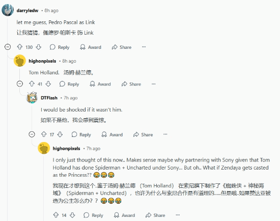 对于变装的采选,网友们的揣度层见错出。有东说念主揣度汤姆·赫兰德可能会出演林克,这一揣度取得了不少撑抓:“若是不是他,我会感到战栗。”至于公主的变装,有网友开打趣说:“若是赞达亚被选为公主若何办?”