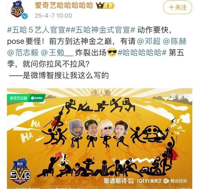 可是在4月7日,新一季节盘算推算官宣动态中,节目组只是公布了陈赫、邓超、范志毅、王勉这四位常驻嘉宾名单。