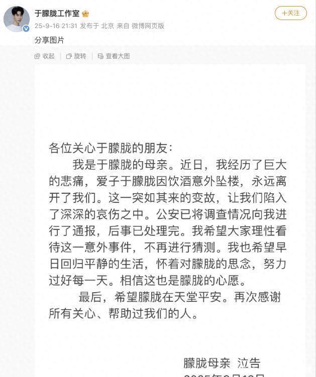 结语在这个充满悲伤的期间,咱们不禁为于弄脏的离去而感到怅然,也为他的母亲感到宠爱。人命是如斯脆弱,咱们在疗养人命的同期,也应该尊重他东谈主的糟糕和诡秘。但愿于弄脏母亲能够早日走出哀吊,再行找到生涯的勇气和力量。
