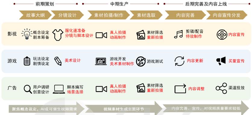 01 “爱优腾”也有春天1.从PGC到UGC到AIGC,去中心化愈演愈烈历久以来,内容坐褥受困于高成本、长周期的痛点:传统动画需上百东谈主团队耗时数月,影视制作成本动辄数千万,爆款出生频频依赖命运。是以内容坐褥破局的第一条铁律,便历久被界说为“工业化”。