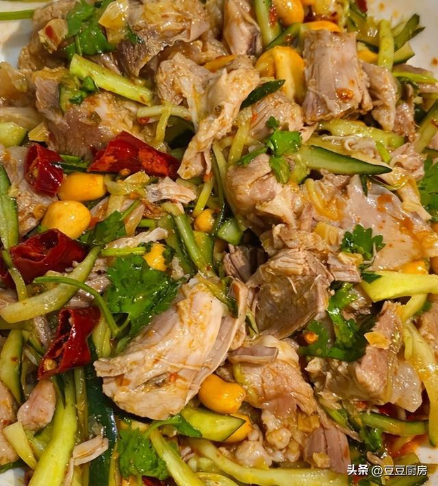 前边说的齐是素的巧合海鲜,东北东谈主奈何能少得了肉?但热菜吃肉太腻,凉菜里的肉该奈何吃?谜底是拆骨血。所谓拆骨血,便是猪头肉、脊骨巧合棒骨上,用刀剔不下来、只可用手小数点撕下来的碎肉。这些肉有肥有瘦,还带着筋膜和脆骨。